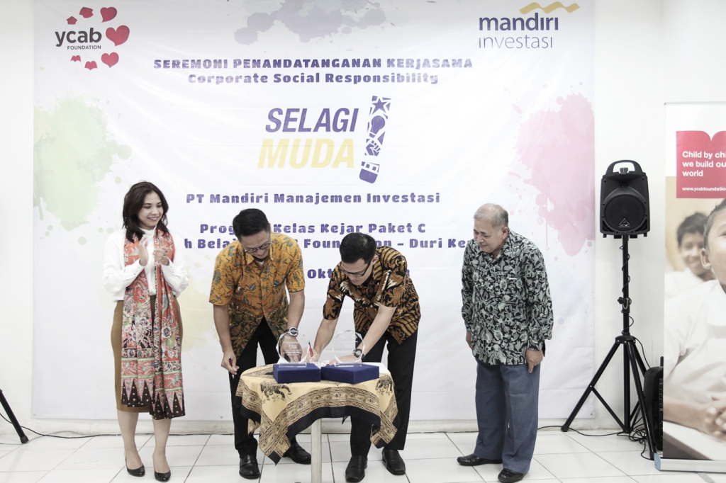 This October marks the starting point of YCAB Foundation and PT Mandiri Manajemeng Investasi (“Mandiri Investasi”) collaboration. Mandiri Investasi is officially supporting the high school equivalency education programme at YCAB’s Learning Center in Duri Kepa, West Jakarta. Mandiri Investasi will support all operational activities for 35 students for a one-year period.