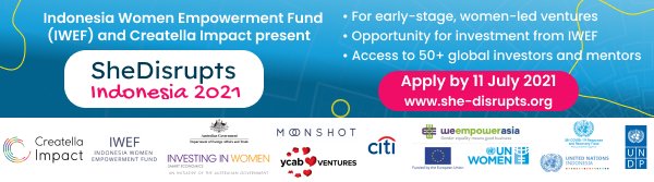 The largely untapped economic potential of women entrepreneurs in South East Asia, might be used to increase the social and economic resilience of the entire region in the post-COVID era. Therefore, SheDisrupts Indonesia 2021 is the one of the ways to alleviate the spark of women entrepreneurs in Indonesia. This program is held one year after the launch of the Indonesia Women Empowerment Fund (IWEF), aspire to bridge the existing gap by supporting Indonesian startups led by women. IWEF itself exists to overcome barriers to women’s economic empowerment by investing in disruptive technology solutions led by women entrepreneurs.