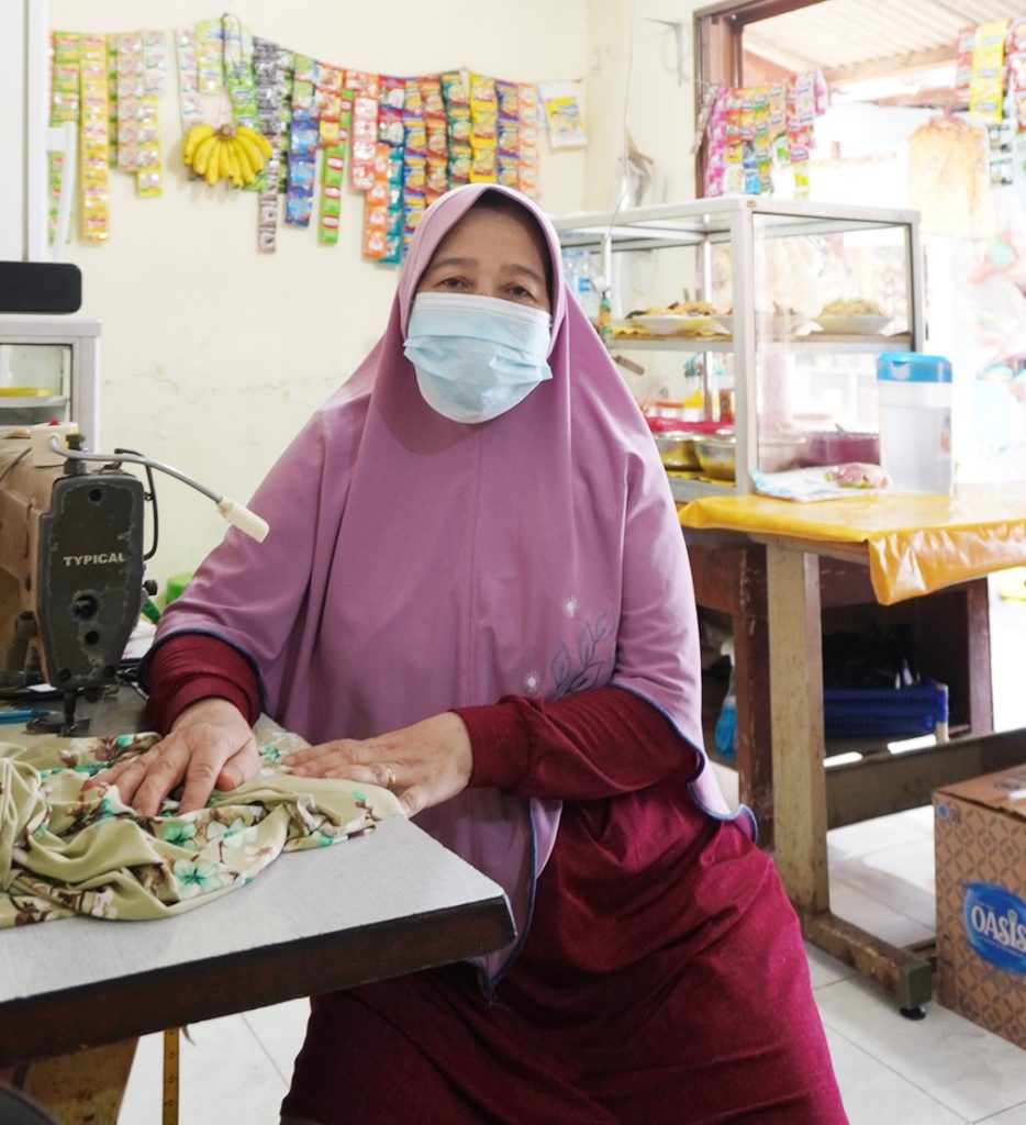 To support her family, Sepitowati owns two businesses; a food stall and a tailoring service. In 2020, the decline of her income, which was unprecedented, finally happened due to a change in buyer behavior as many of her usual customers found themselves unemployed. Her tailoring business that mainly receive orders for school uniforms also took a hit with school activities reduced to remote learning.
