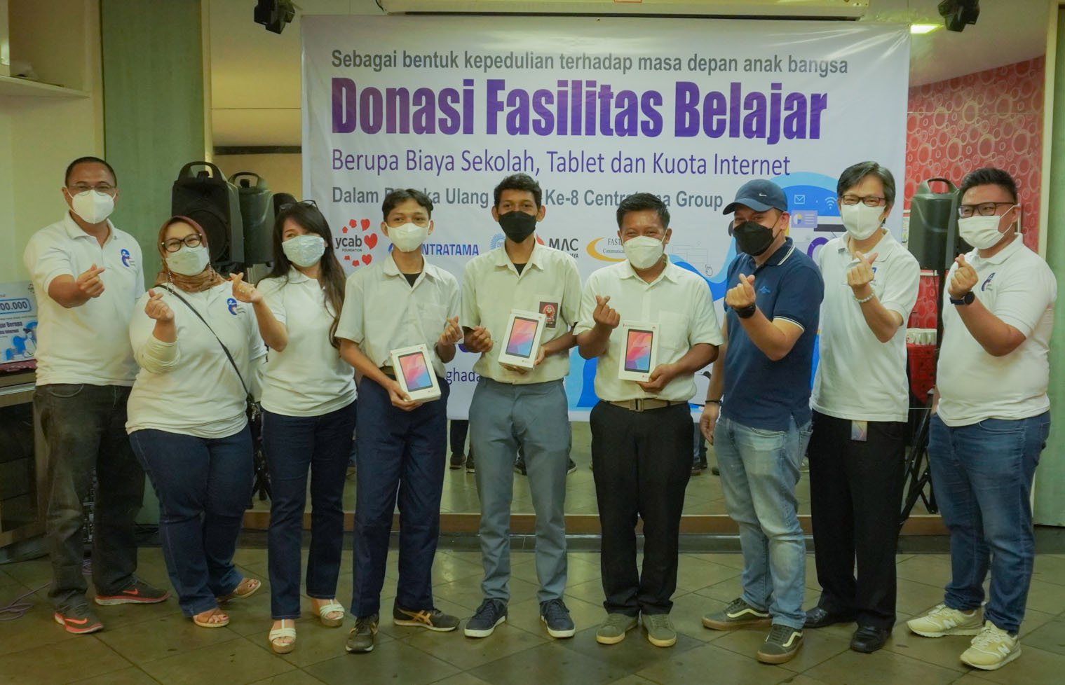 Memperingati hari ulang tahunnya yang ke-8, Centratama Group memberikan dukungan kepada 70 siswa YCAB Foundation untuk melanjutkan pembelajaran online mereka dengan memberikan dukungan pendidikan selama satu tahun termasuk perangkat baru dan kuota internet.Kado spesial dari Centratama Group ditambahkan dengan komitmen karyawan mereka dengan menyediakan kelas khusus untuk berbagi tentang pilihan karir di tempat kerja profesional.