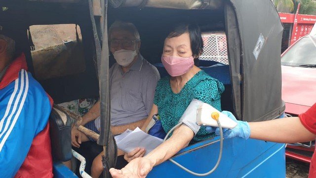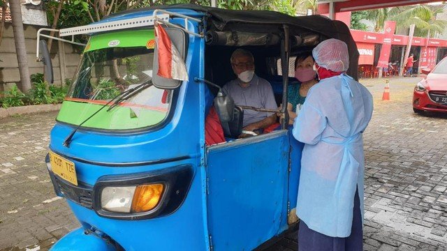 Sepasang Lansia Naik Bajaj untuk Booster Corona Drive Thru di YCAB Jakarta