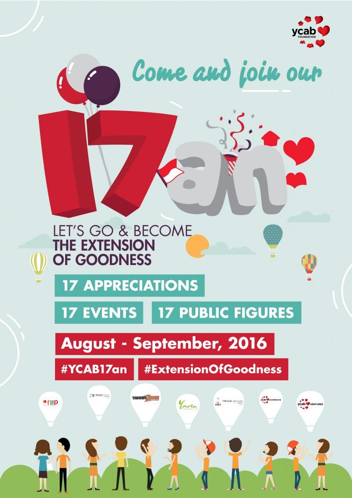 Turning seventeen usually brings a distinct impression, which is the case for YCAB. This August, YCAB Foundation turns seventeen. To celebrate the anniversary of YCAB, many interesting events will be held in August all the way through September 2016. We call YCAB anniversary this year ‘YCAB17an’ with the theme #ExtensionOfGoodness. This theme was adopted so that all […]