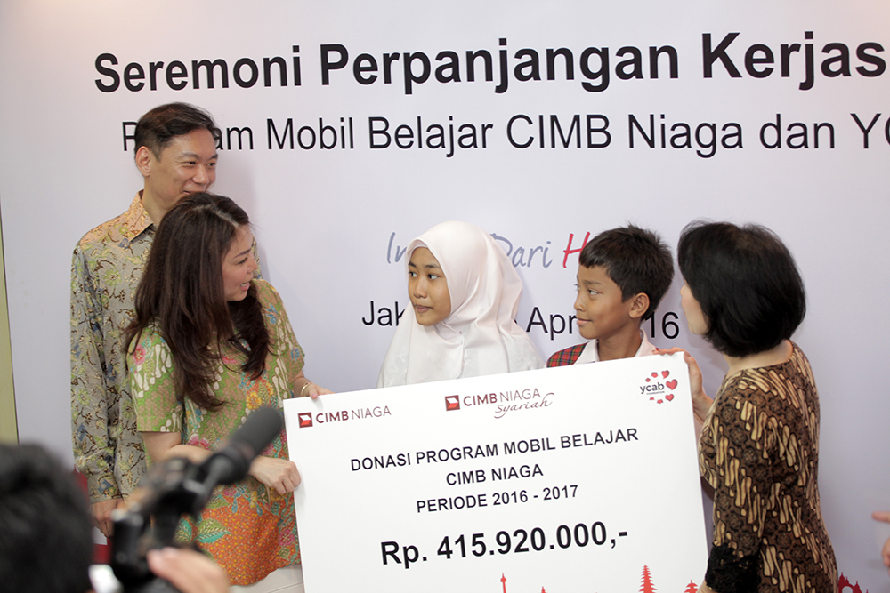 Jakarta, April 18th, 2016 – PT Bank CIMB Niaga Tbk (CIMB Niaga) collaboration with YCAB Foundation continues in a program called ‘Mobil Belajar CIMB Niaga’. This program was initiated in 2011 and aimed to increase technology skills and knowledge. CIMB Niaga shows concern to the field of education in Indonesia. Mobil Belajar CIMB Niaga targets […]