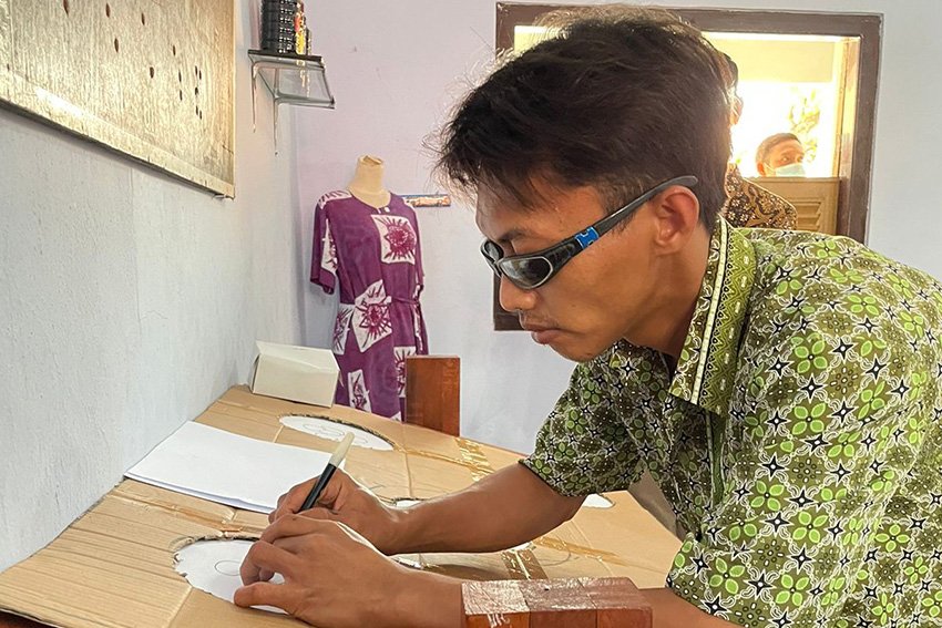 The visually impaired (dristrarastra) at the Bojongbata Elderly Social Service Center Practice Batik with YCAB