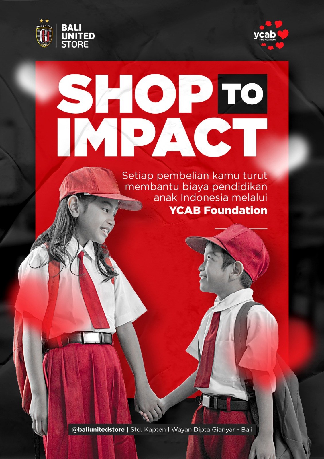 Dengan melakukan pembelanjaan atau pembelian sesuatu barang artinya secara langsung juga akan berdonasi untuk YCAB Foundation dalam program Pejuang Anak Bangsa (RBBatik – Disabilitas Netra dan Disabilitas Mental) melalui Bali United Store, Bengkel Bos dan Terra Klinik.