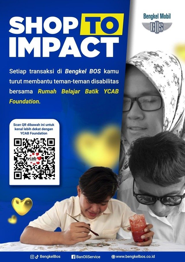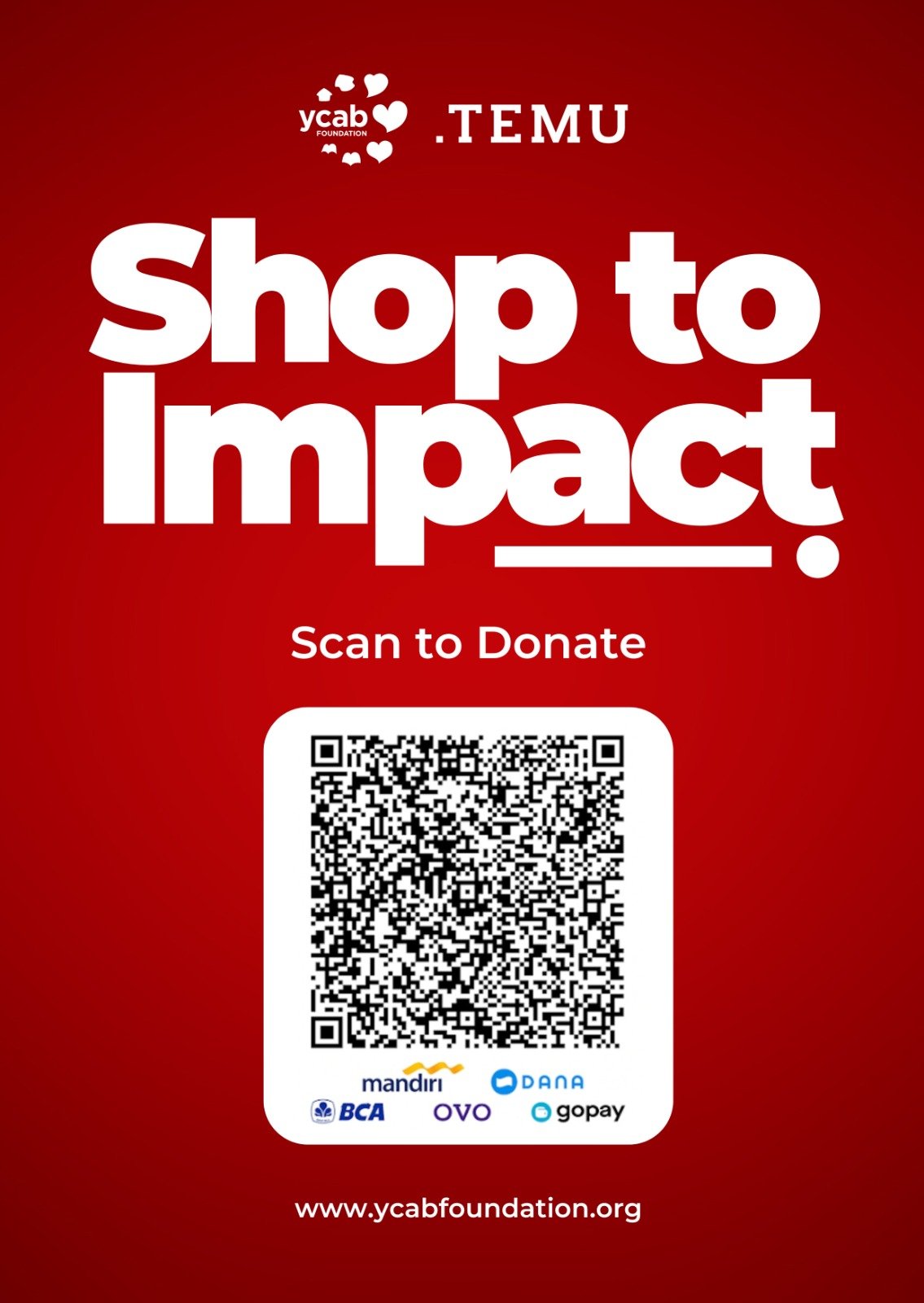 Program “Shop to Impact”, ialah dalam setiap pembelian barang/ jasa tidak hanya untuk memenuhi kebutuhan, tetapi juga berkontribusi pada tujuan sosial dan dampak yang lebih besar. Jika Anda tertarik untuk terlibat atau mengetahui lebih lanjut anda bisa menghubungi pada email contact@ycab.org.